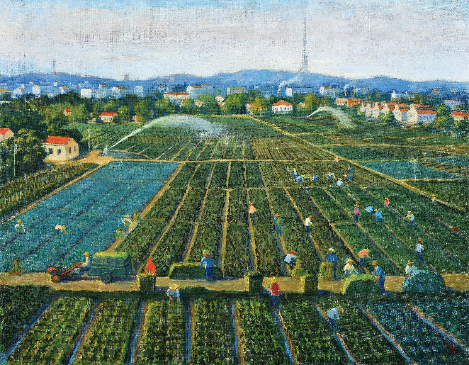 Yee Bon‘s Suburban Vegetable Garden, was estimated at 80-10 million RMB, and finally sold for 11.27 million RMB, setting a new auction record for the artist. Yee Bon has natural compassion for the working people, which forms a strong endogenous tenacity in his works. The Suburban Vegetable Garden in the suburbs, created in 1976, is a masterpiece of Yee Bon’s late creative career. This work takes a bird's-eye view of the vastness and vitality of farmland, and the fields on the plain extend from the foreground to the distance, in order to display the fertile and vast farmland.