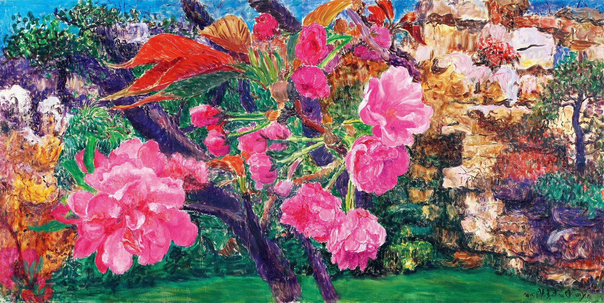 Zhou Chunya has many impressive series works: The exotic Tibet series with strong colors, the unusual mountain rocks, the luscious peach blossoms, the stunning and funky green dogs and the oddly shaped Taihu rocks. These series of works crossed multiple important period of time in Zhou Chunya’s art career, and each period is always refreshing.