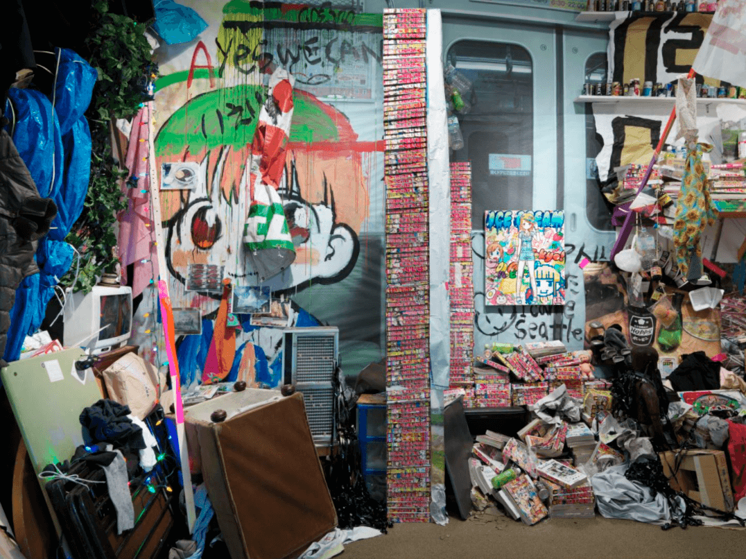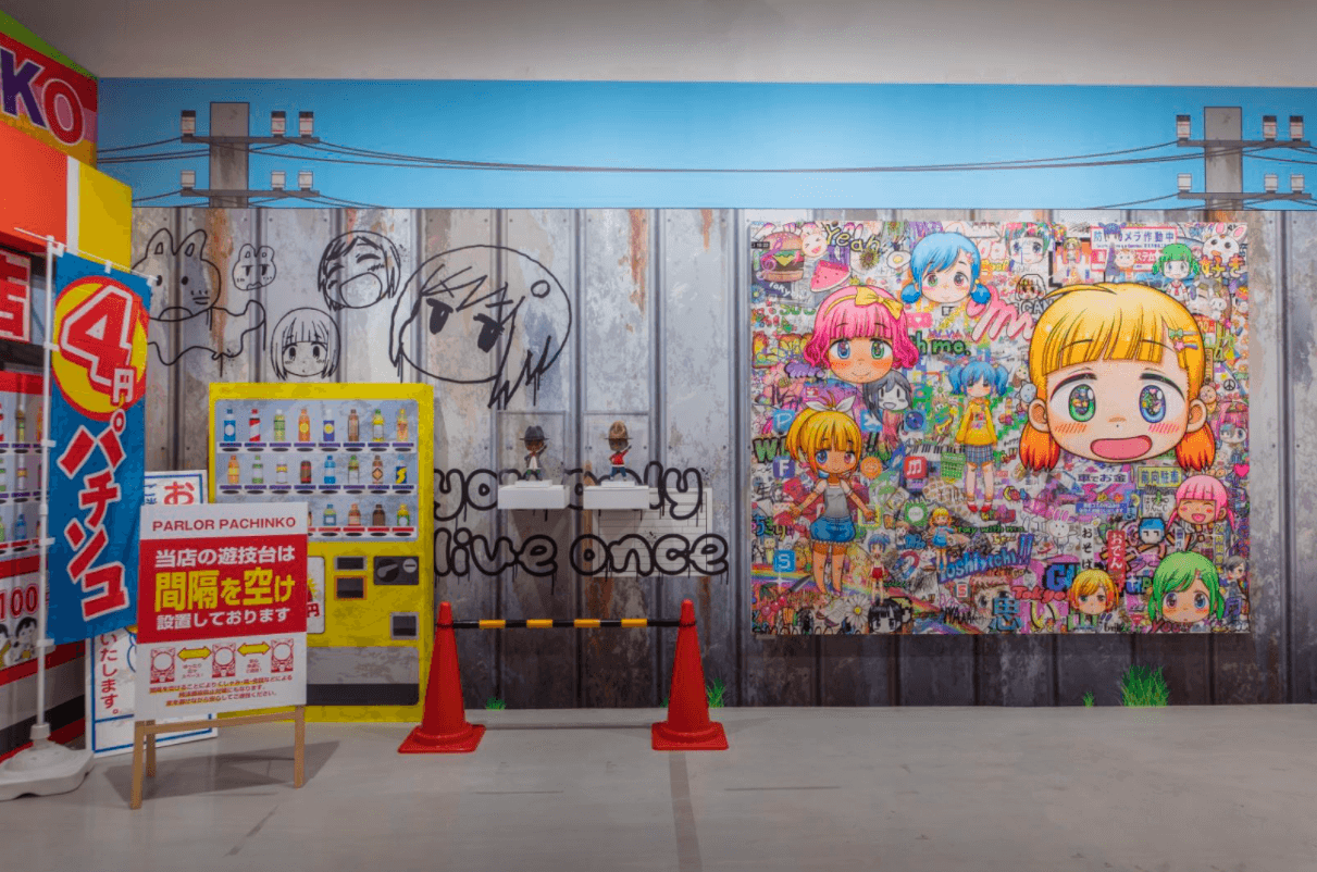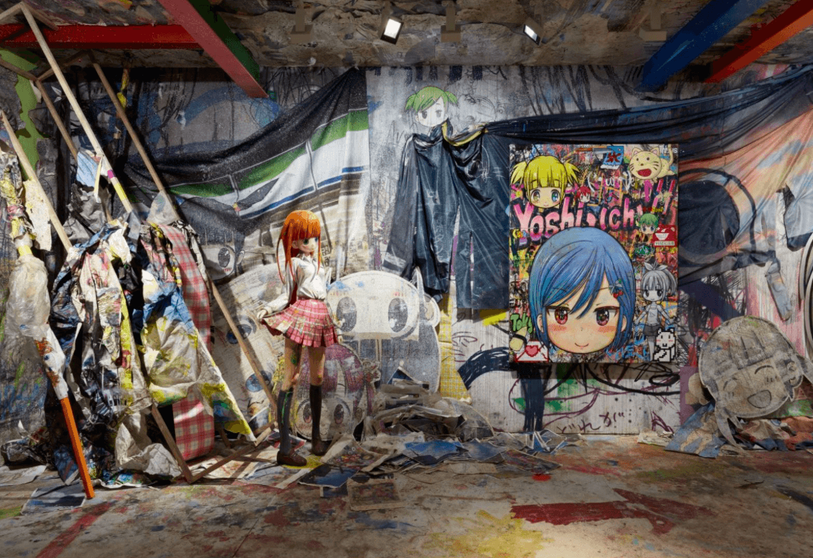禦宅族的私人居住空間不常為外人所見,而現在Mr.將這一空間直白地呈現在美術館語境中。此外,藝術家還打造出充滿日本文化符號的一幕幕街景,其中既有日常物品、當地的廣告橫幅、燈籠、便利店圖像,也有穿插其中的Mr.本人的繪畫和雕塑作品。展覽呈現了一出出關於個人存在的日常故事,而這些看似不起眼的小確幸在快節奏的都市生活中常常被人所忽視和遺忘。