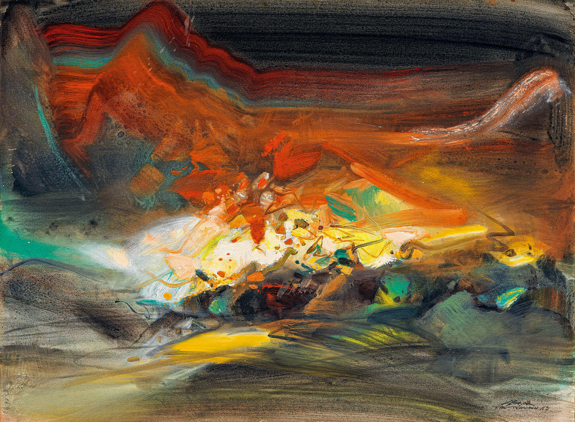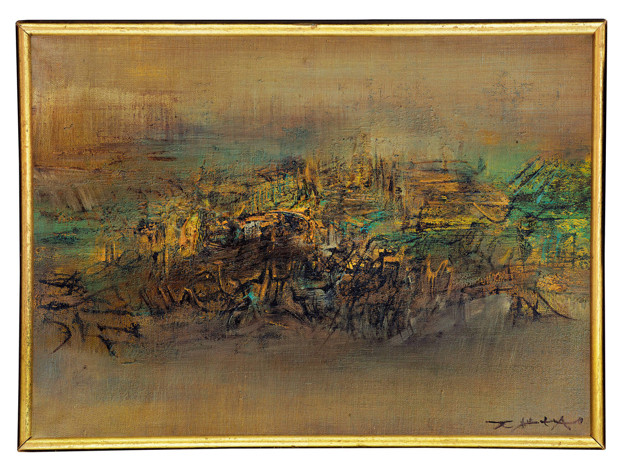 Achieving the first peak in career and a major leap forward in art creation, Zao Wou-Ki in the "glorious 60s" is often said as an artistic focal point imbued with the Zeitgeist of the times.12.05.60 is a representative of such period. The interplay of yellow, green, brown and black imbues the work with a sense of initial feelings on land and light.The symbols Zao used in his earlier works are transformed into layers of curled, brisk, densely packed lines in traditional calligraphy. By rafting avital nature expression of a powerful cohesiveness and spiritual thoughts in the abstract context of impermanent change, this painting builds compositions on landscape painting to invite the audience to indulge in the spiritual world of infinity.