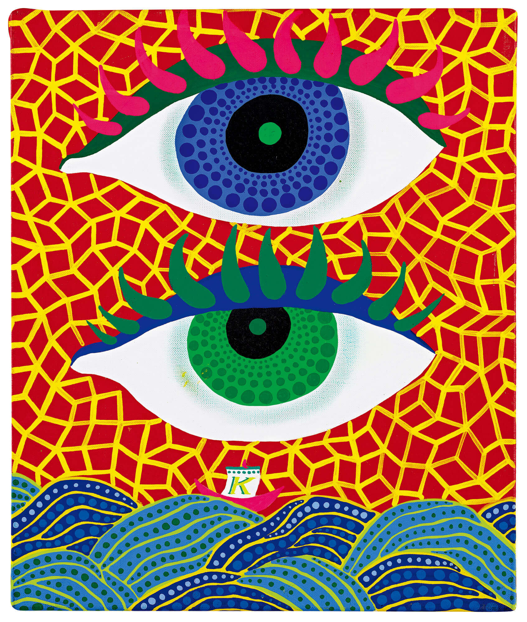 The work which created in 1970s, On the Ocean,is the cover lot of our season in this sale. Merging Infinity Nets, dots, and personalised characters all in one, it represents the fantastic imagination of Yayoi Kusama with an unconventional composition: above the ocean where waves are roaring, two magical eyes loom into the view. It also recalls her mindset when she went back to Japan to challenge the conservative art scene in East, marking a meaningful step of the artist’s career.