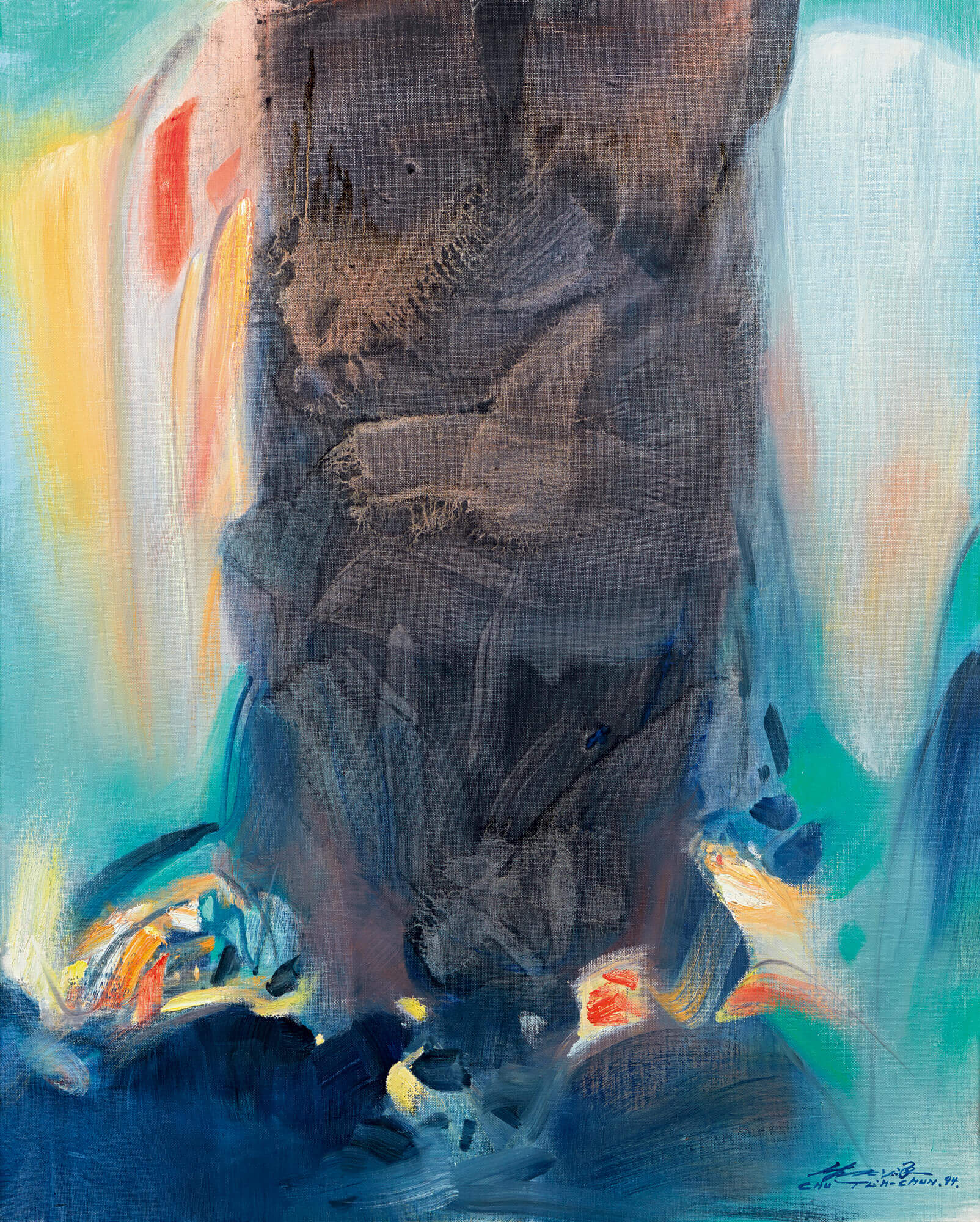 Chu The-Chun reached his artistic peak in the 1990s while he set off travelling in Western Europeto derive mental imagery landscape from the Western masters of art. Based on his observations during this time, he completed Matière Centralein 1994, which marks as a milestone of his mastery of brushwork and color use that represent his intangible connections with master painters. Chu separated bright and dark color blocks to integrate the contrary space of the virtual and the physical, light and shadow. He used calligraphy techniques to swing slowly upwards, adding layer to the texture and forming a strong momentum. His brushwork, like a gurgling stream, presented his "mental imagery" poetically in full confidence