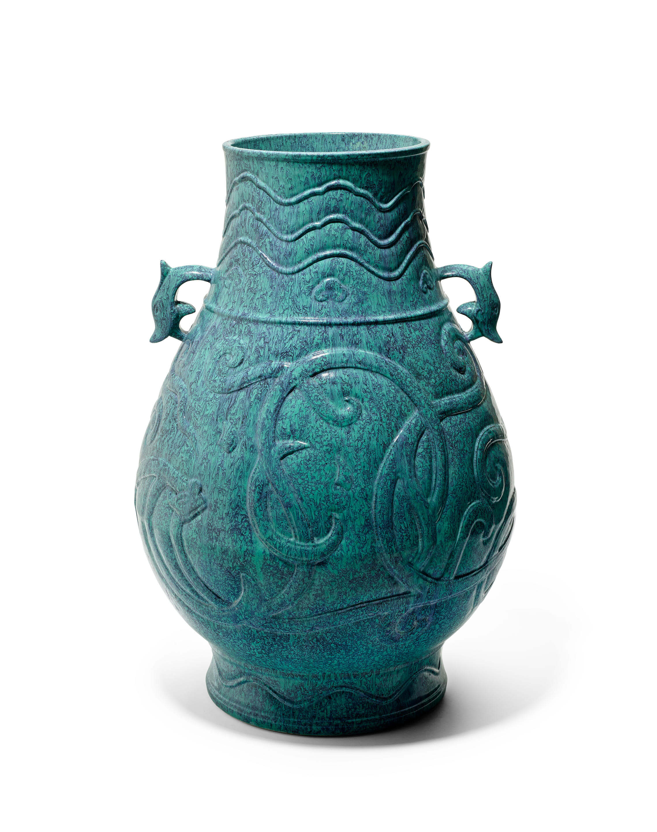 A Magnificent And Rare 'robin's-egg' Glazed Archaistic Two-handled Vase, Hu