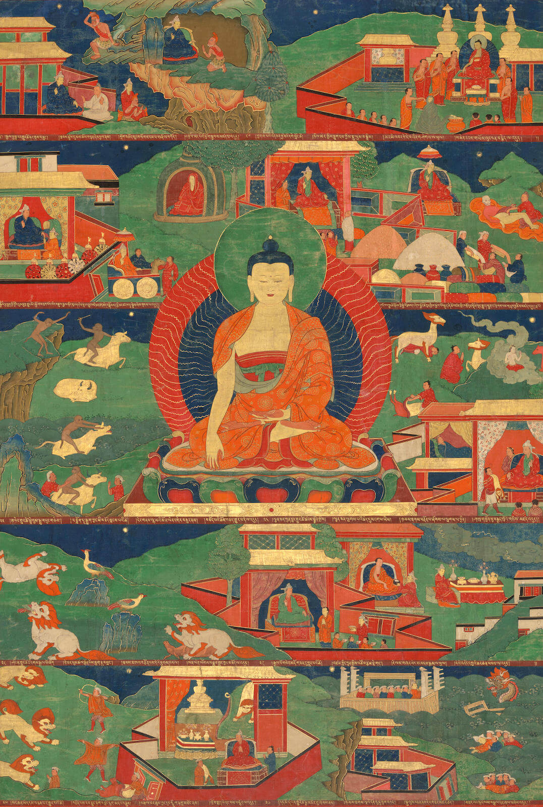 A Thangka Depicting Scenes From The Past Lives Of Shakyamuni Buddha