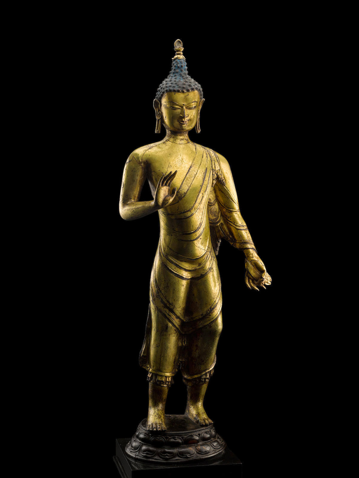 A very rare, large, and early gilt copper alloy figure of Standing Buddha from the 11th/12th century; a premier group of modern Chinese paintings from the Fabian Collection, Part III; and rare Japanese surimono prints from The Crawford Collection are among the highlights of Bonhams Asia Week sales. This September, Bonhams will present seven sales of fine and rare works from a range of art historical periods throughout Asia’s past and present, the sales include: