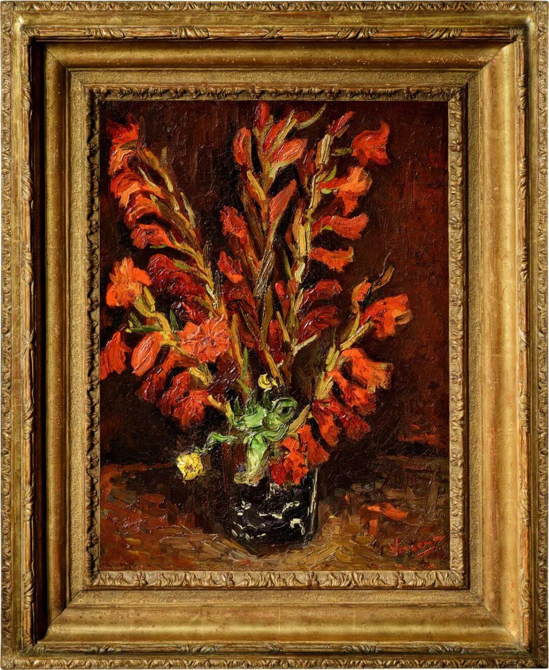 生意盎然的《靜物:花瓶與菖蘭》捕捉了藝術家的個人蛻變,描繪出他新發現的樂觀及正面的的情緒狀態,為他日後最標誌性的太陽花系列奠定了基礎。梵高的靜物作品嚴肅而有力,造就了現代藝術史上其中最廣為人知的影像。