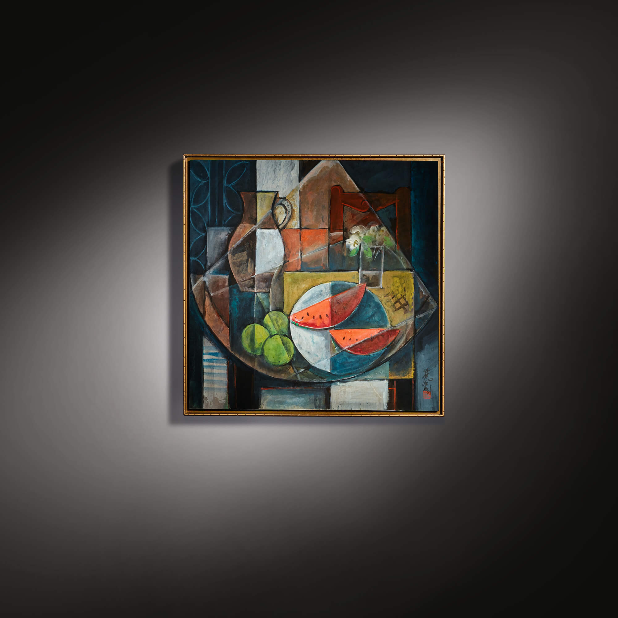 Sanyu created more than 130 flower paintings throughout his career, with chrysanthemums as the flower he chose to depict most frequently. Six of the current top ten auction prices for the artist comprise of paintings of potted flowers or flowers in vases, testament to their reputation amongst collectors. Fleurs dans un pot bleu et blanc was first owned by Parisian art dealer Raymond Toupenet, and later acquired by Jean-Claude Riedel, an important collector of works by the artist, before returning to Asia, where it has remained in a private collection for over ten years.