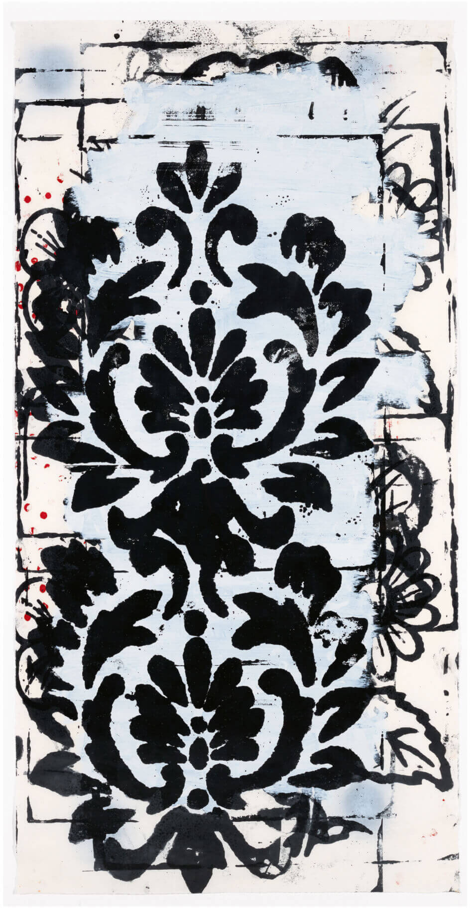 UNTITLED created in 1993, it is a classic and elegant example of Christopher Wool's floral pattern images. Against the stark white ground of the paper,Wool employs this unique technique of roll-brushs to paint these cartoonish blooms. The overall effect is one of lush and indulgent painterliness. This exquisite cacophony of expressive abstraction work is a representative of Wool's e extraordinary ingenuity of the creative mind on art medias.