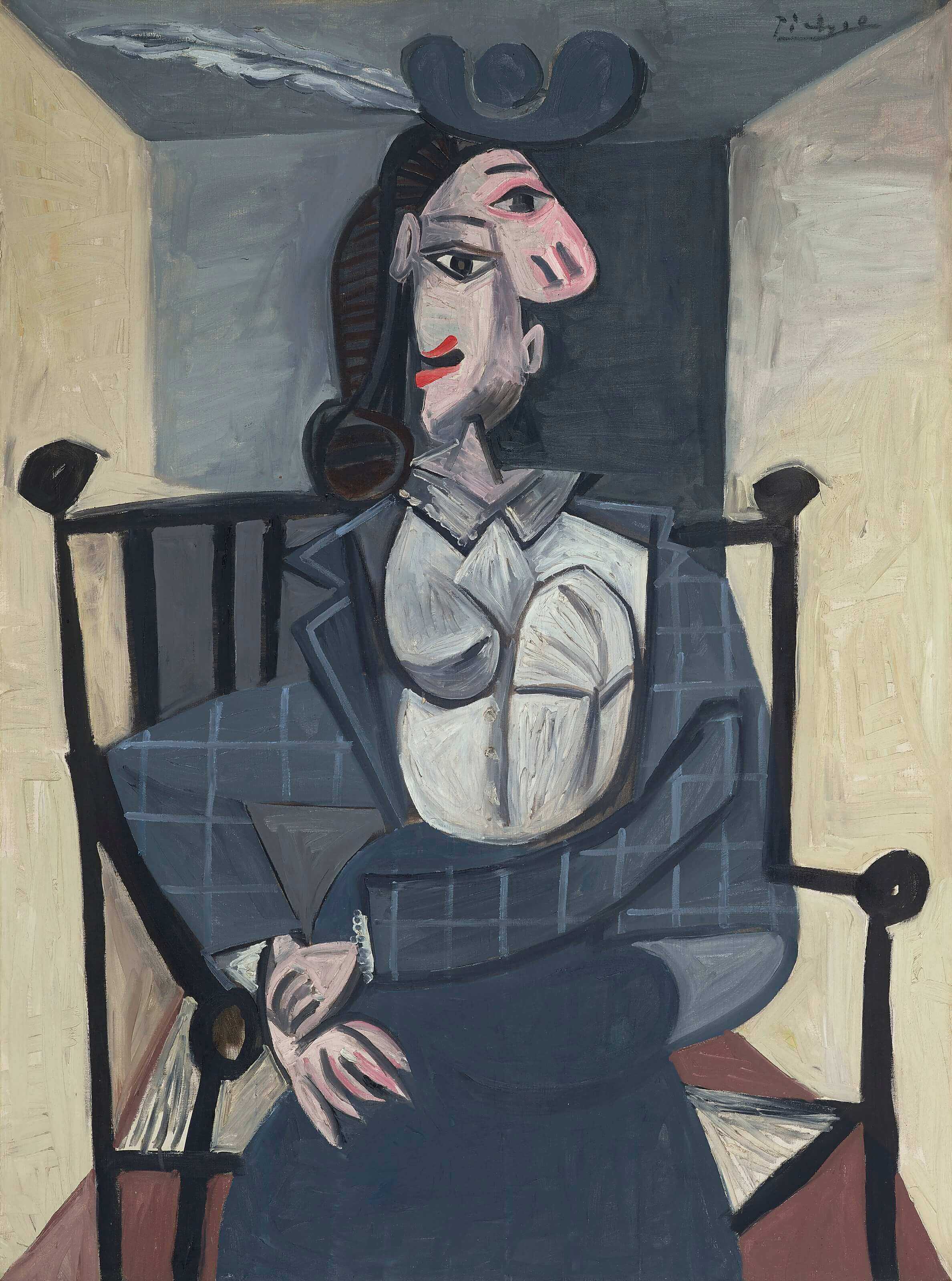 Pablo Picasso has created a series of arresting portraits for his lover and muse Dora Maar during the second year after Germans occupied France, they also reflecting Picasso's inner reaction towards this situation. The upcoming work Femme Dans Un Fauteuil is one the Dora's portraits of Picasso in 1941, other works from this series have been collected by many important museums including Musée National Picasso, Kunstmuseum Basel and Neue Pinakothek. Femme Dans Un Fauteuil is going to be showed at Chriestie's New York in October 6th with an appraisal of USD $20-30 million.