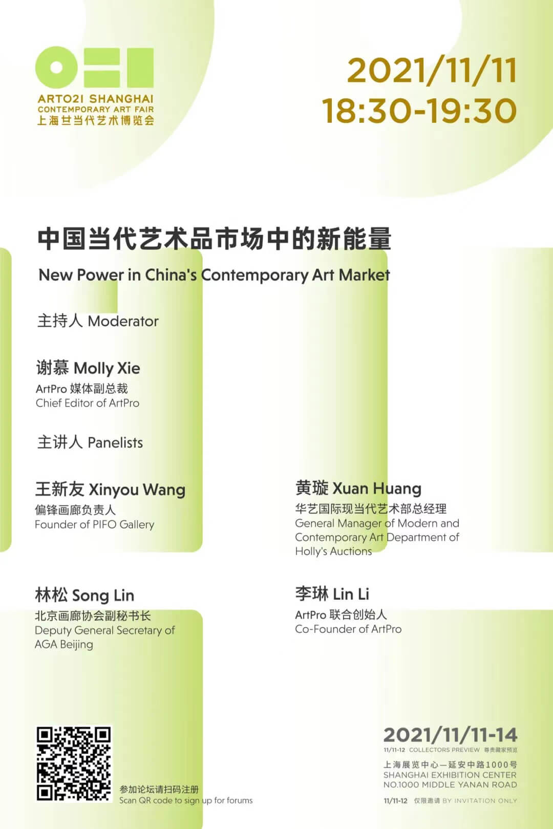 11月11日晚18:30-19:30,在ART021上海廿一當代藝術博覽會現場,華藝國際以開闊的學術視野,聯合 ArtPro 精心策劃“ 中國當代藝術品市場的新能量 ”論壇就中國當代藝術品的一級市場最近有什麼新的變化?中國拍賣市場中,近五年來,當代藝術板塊的主流藝術家有哪些?近期來看,當代藝術市場蓬勃發展,藏家群體的前景如何? ”等問題進行多維度探討。