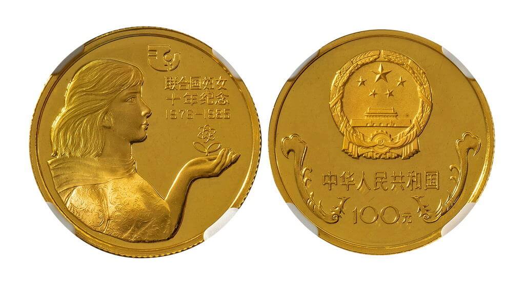 1985年聯合國婦女十年紀念100元金質樣幣一枚