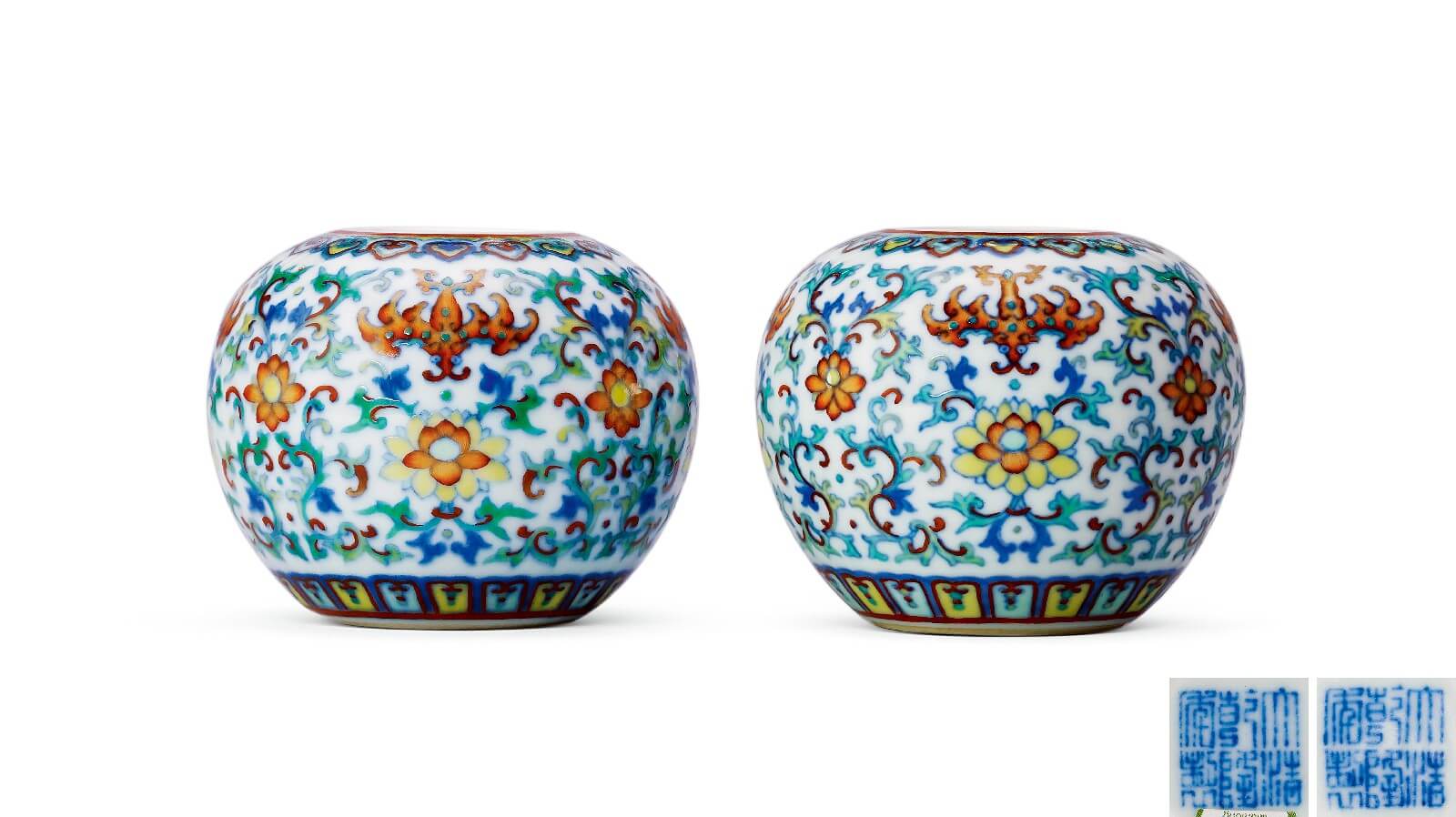 清乾隆 御製鬥彩瑞蓮福至心靈水盂 (一對)
