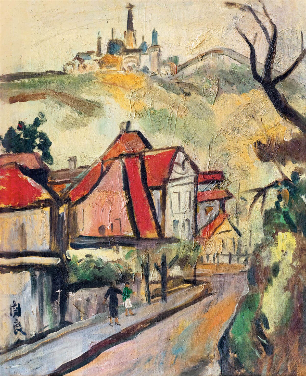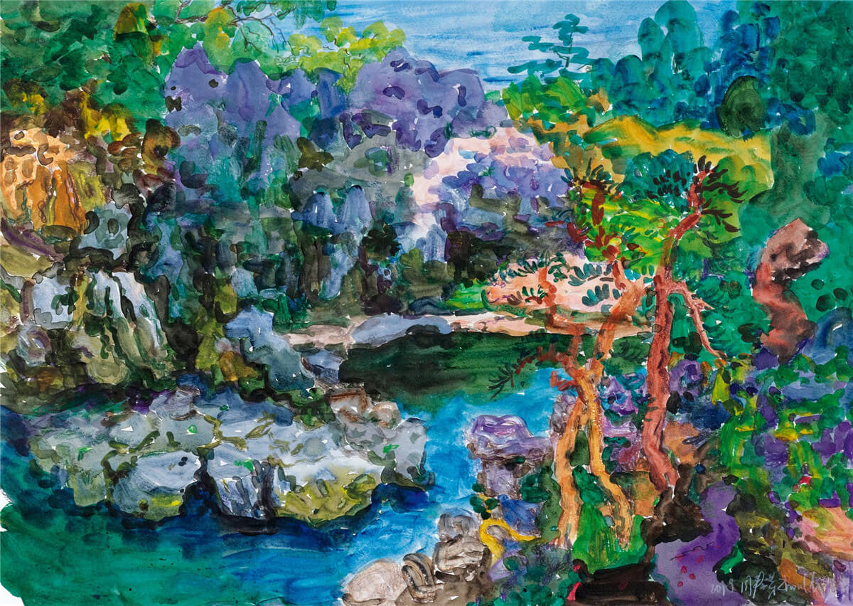 關良1957年訪德期間創作了一系列“德國風景”作品,在德期間關良受益良多,當地充滿異域風情的風景令他留戀不止,情之所至曾進行多次創作。 此幅《海倫》甚得關良所喜,後贈與女兒,由畫家家屬珍藏至今,彌足珍貴。