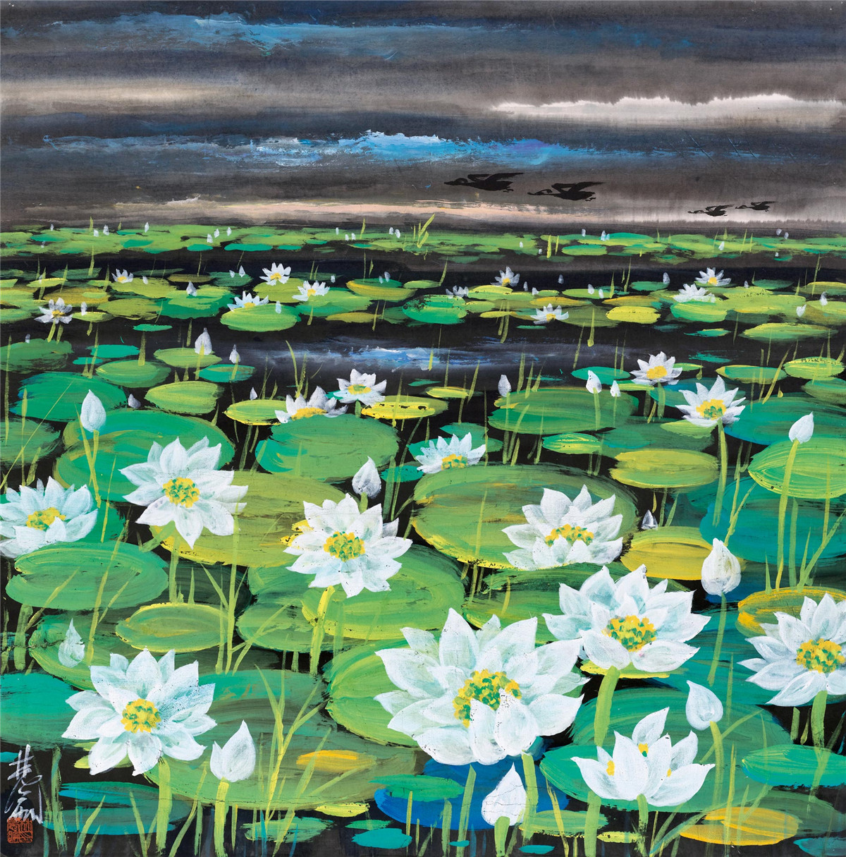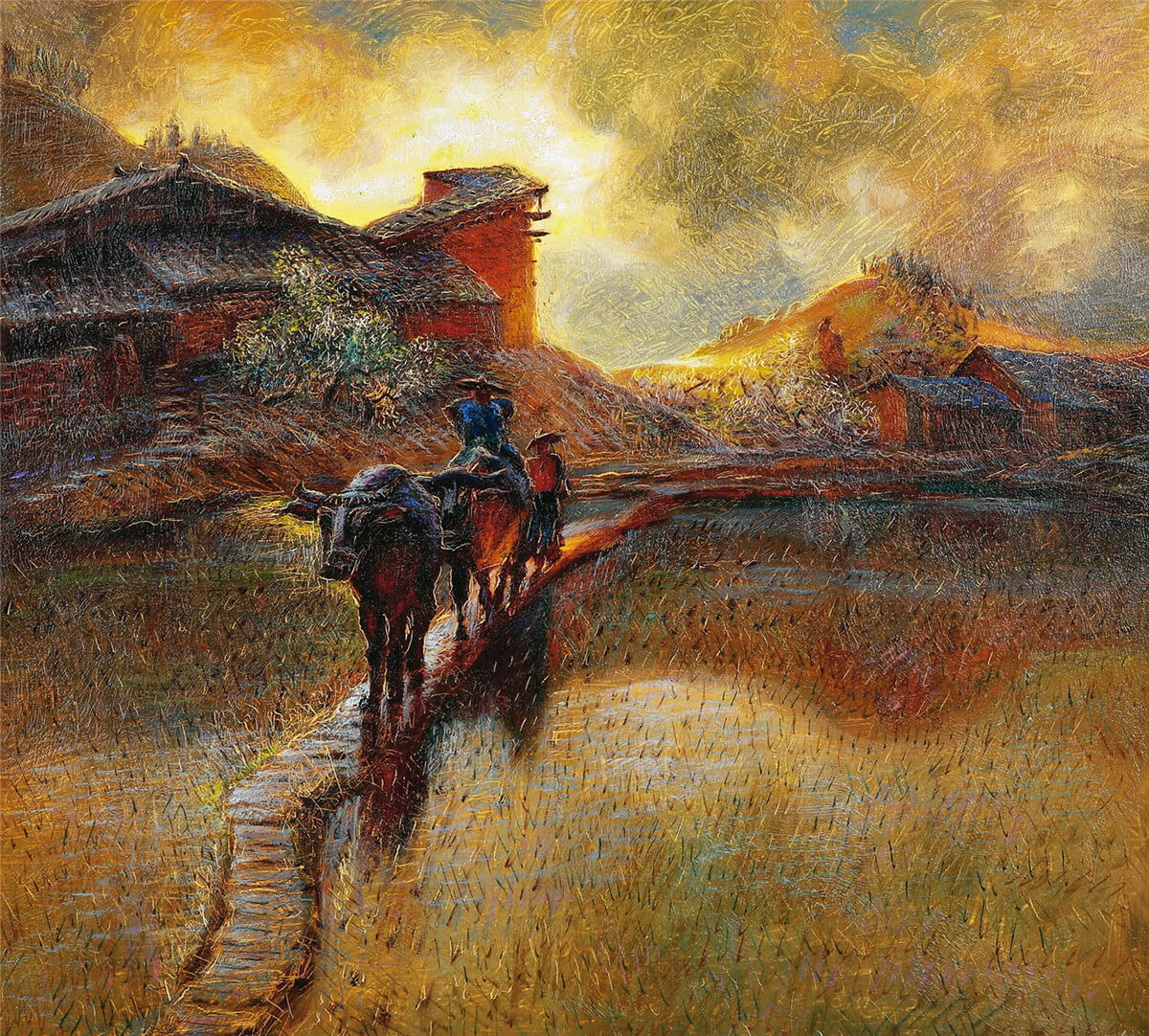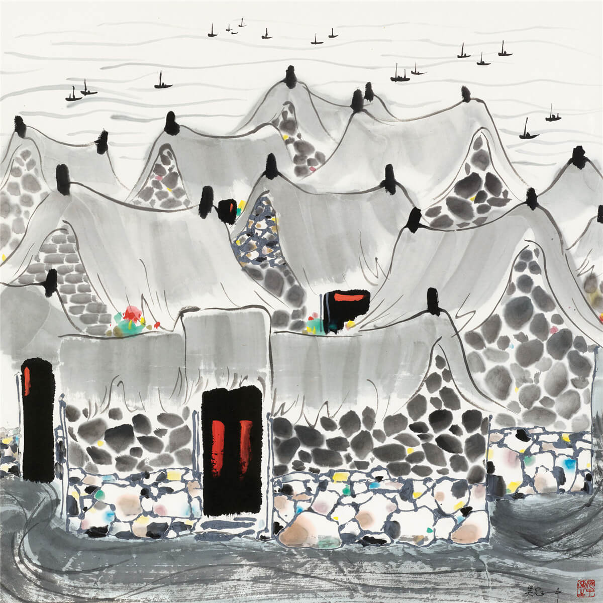吳冠中自上世紀五十年代起,便多次前往大漁島村寫生,留下諸多佳作,這件《大漁島村》創作於1993年,是大漁島村系列中極具代表性的精品之作。