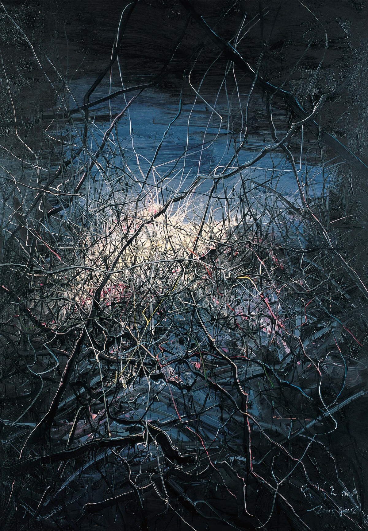 1990年朱德群畫室搬遷,之後朱德群很多佳作都從這個畫室產生,《黃色空間》也是在剛搬入畫室不久的創作,畫作以黃白藍作為基調,隨著意趣的筆墨延伸至色塊的表達,充滿了詩意。