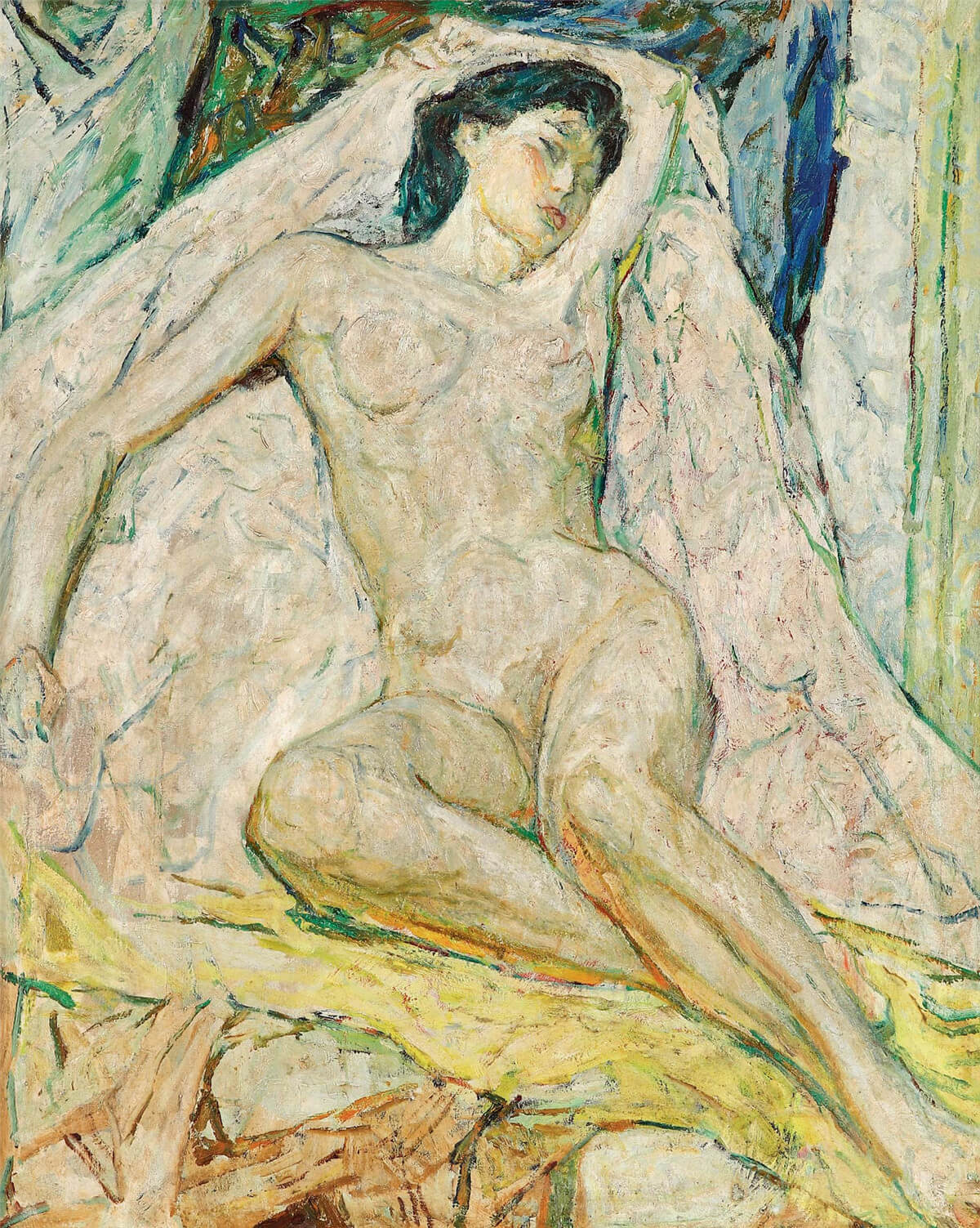 本拍品創作於沙耆比利時留學時期。 1940年左右,沙耆創作了一系列以中國元素為題材的油畫作品,他將中國傳統繪畫的哲學性帶入到西方語境中,以此為媒介,傳達出中西結合彼此交融的美學精神。