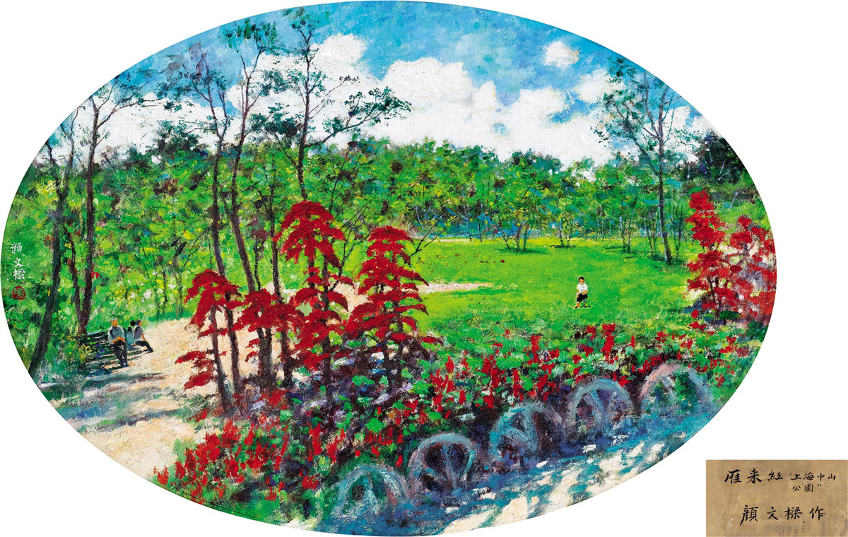 此次西泠拍賣隆重推出了五件顏文樑佳作,從油畫到水彩可一窺先生繪畫的藝術魅力,其中《雁紅來》採用橢圓形構圖,是1973年顏先生在中山公園對景寫生之作,錢幣大家李偉光夫人求購後在家族中深藏多年。