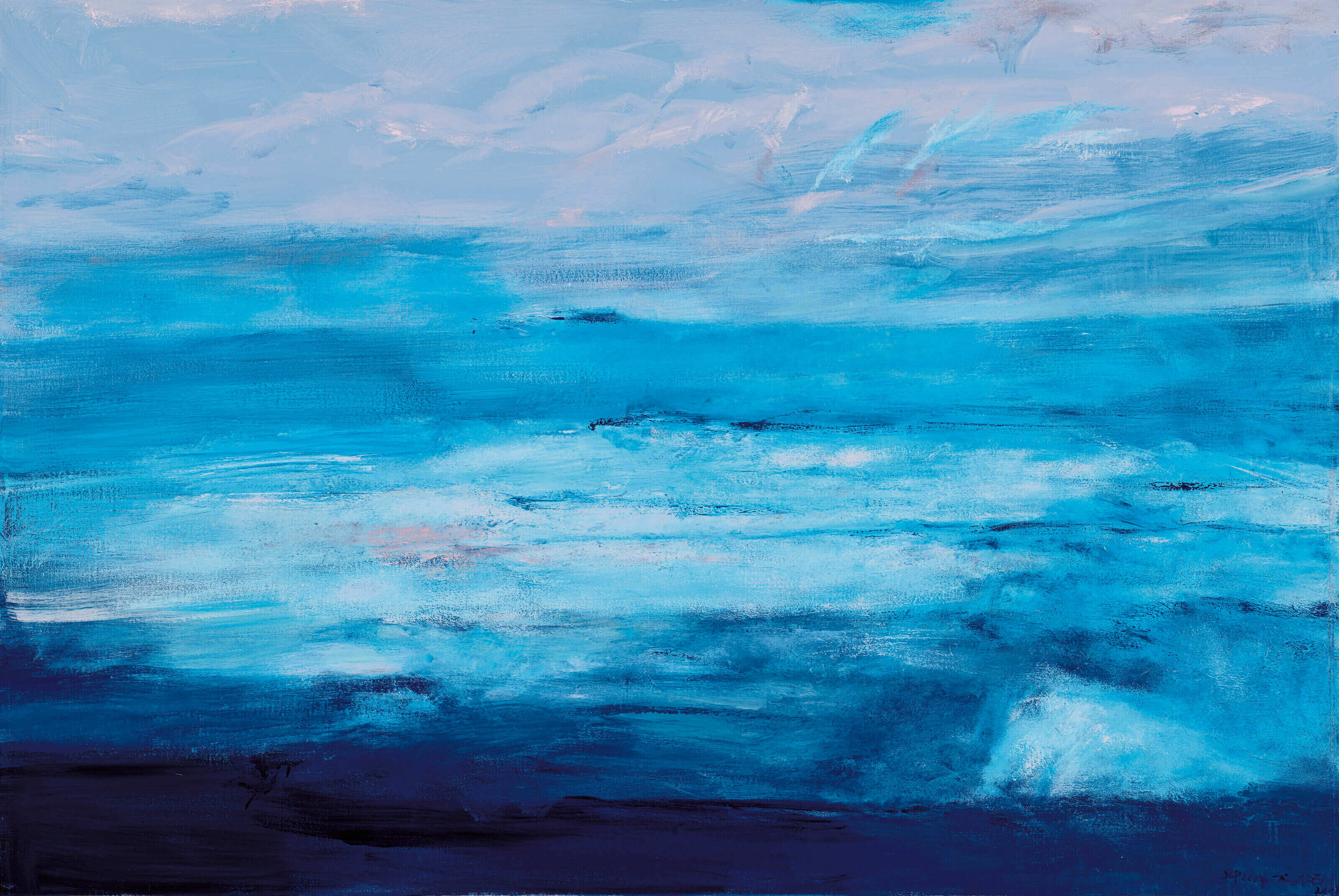 Zao Wou-Ki's "Le Soir À L ’hô Tel Du Palais (Palace Hotel By Night)" was hammered down at 20 million CNY, plus a commission price of 24,360,000 CNY. The sea under the night, without the hustle and bustle of the daytime crowd and noise, has a deep and nostalgic feeling.