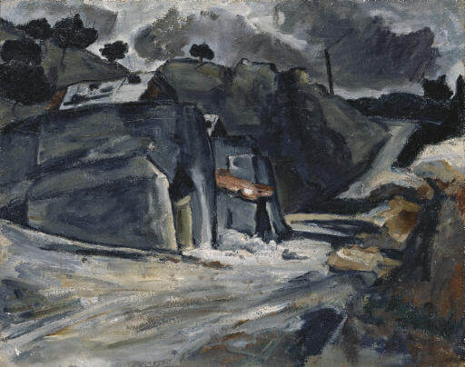 In his landscape paintings, both the closed and distant objects are drawn into the same plane. The trees and houses are depicted with cursory brushstrokes and lines, even grass and dark clouds. The whole image seems to filled with suppressed fantasies.