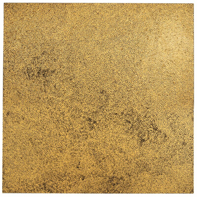 自1959年發展至今的「無限網」為草間最為經典的系列創作,初期以黑白為主色,自1999年甫出現金色的無限網。而在這之中,以玄黑為底的金網之作,更是稀少,在過去拍賣30年間,僅曾出現5件「黑底金網」,而是次隆重呈現的《無限金網》,則為當中最大尺寸者,稀世程度不言而喻。