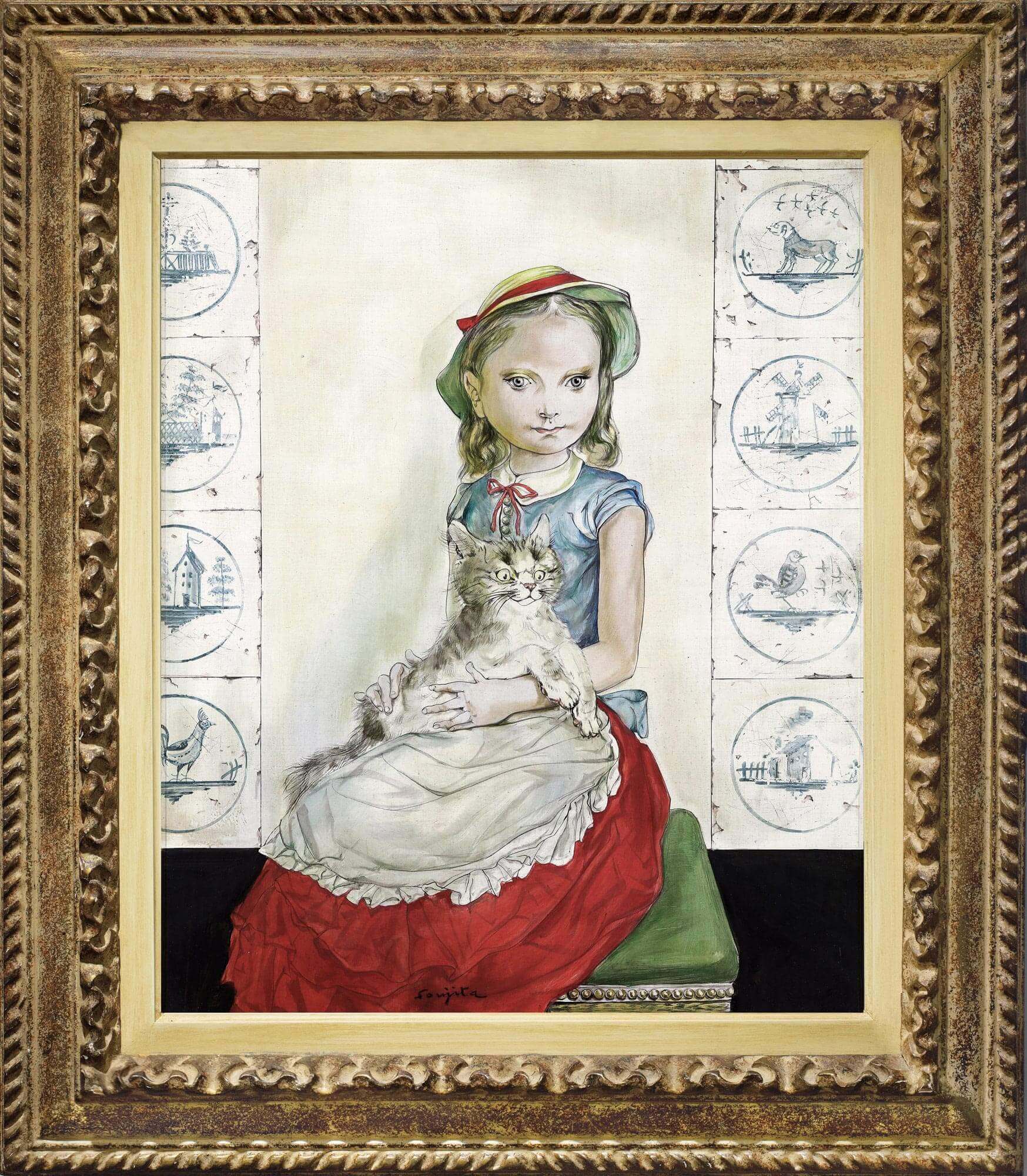 In addition to the naked women, Tsuguharu Foujita is also good at painting cats. Cats are regarded as a symbol of family in Japan. For Foujita, who was in a foreign land, painting cats seems to be a kind of inner sustenance to his nostalgia. The cats also had occupied his works and life throughout the whole time. Tsuguharu Foujita once said, "Women and cats are the same. They seem lovable and sensible, but if you slight them in any way, they will forget all their gratitude to their master and lightly betray you." In many of his paintings, cats and women often appeared at the same time.