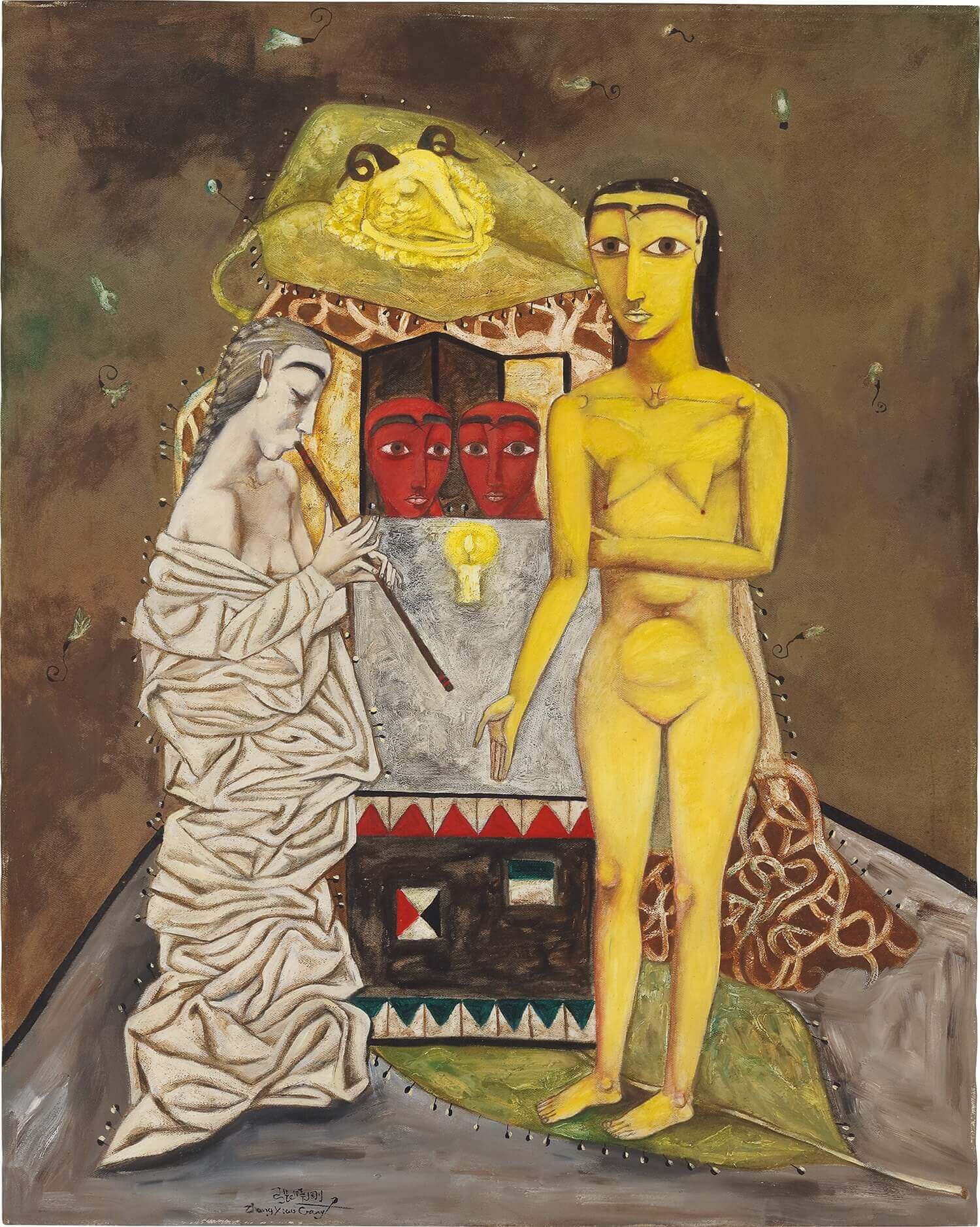 An array of Chinese Contemporary artworks by the most reputable Chinese artists including Zhang Xiaogang, Liu Ye, Liu Wei, Yue Minjun, Fang Lijun, Zhou Chunya and Huang Yuxing will be offered across the Evening and Day Sales. Led by Zhang Xiaogang’s Fairy Tale, an iconic work among the artist’s early paintings from his Demon period. Even though the tone of the painting is still very much filled with the sense of mystery and foreordination of the Demon series, the dreamy backdrop, large areas of bright colours, and religious attributes exhibited by the figures have shed the sorrow and struggles of the earlier Demon series.