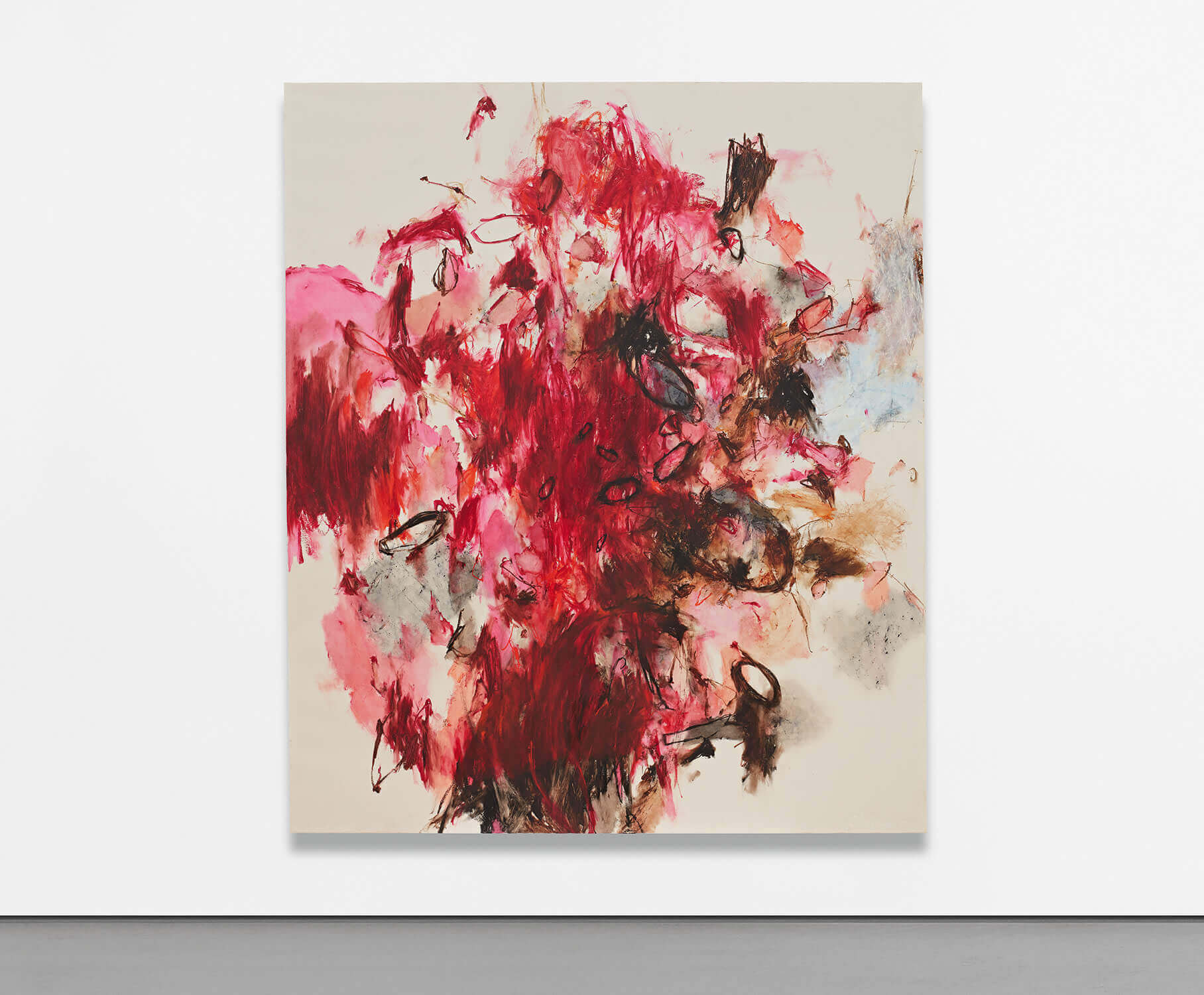 Executed in 2013, When Black and Red Could Hardly be a Circle showcases Christine Ay Tjoe’s inimitable style, with an innate understanding of the relationship between line, space and colour. 2013 was a seminal year for the artist, when Ay Tjoe’s style evolved definitively from figuration to abstraction. Some of her best works were created that year, including the holder of the artist’s world auction record Small Flies and Other Wings which sold at Phillips in 2017. Whilst When Black and Red Could Hardly be a Circle retains some vestiges of figurative language with the same fly-like creatures that feature in Small Flies and Other Wings, in the present work Ay Tjoe places greater emphasis on expressing pure, brute emotion in the blunt, whirling streaks of colour.