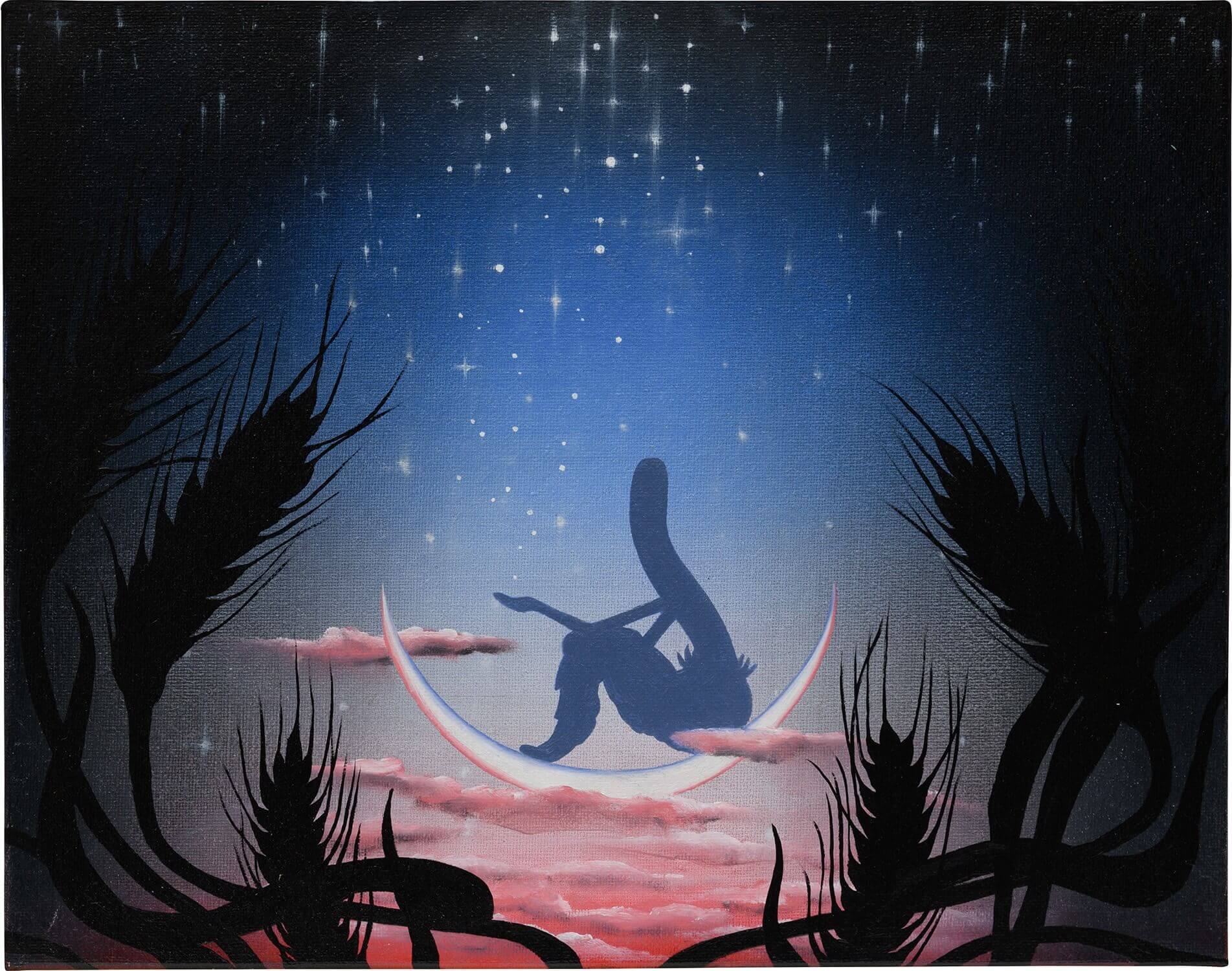 Hothouse Doll was executed in 1995 – a particularly momentous year for Yoshitomo Nara, marked especially by the publication of his first ever book of paintings. In 1995, he also had his first show with Blum & Poe Gallery, which started representing him internationally in the same year, as well as a breakthrough solo exhibition, In the Deepest Puddle, at SCAI the Bathhouse in Tokyo. Since then, Nara’s position as one of the most acclaimed living Japanese artists has steadily solidified. The layered background in the present work showcases the artist’s unique way of building impasto to create soft and sensual backdrops, exemplifying a painterly technique that he gradually developed and refined in the 1990s. During his residence in Germany in the 1990s, the loneliness of living abroad catapulted Nara back to the days of acute loneliness in his childhood, and his profound sense of alienation manifested itself in his iconic portraits of solitary children, fueling refinement and development of his signature style.