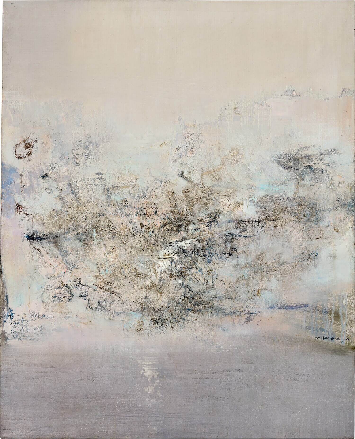 Heavily influenced by the language of Western art, Zao utilised oil paint as his main medium as he developed his artistic style, drawing inspiration from Parisian abstract paintings he encountered after his move to the French capital. However, with the education he received in his formative years laying the foundation of his Eastern aesthetics, the composition of his paintings often recalls the influence of traditional Chinese ink painting. In the painting 12.2.69, Zao organises space in his composition in accordance to the philosophy of traditional Chinese calligraphy and painting. As Zao once stated, 'I admire how Mi Fu arranged space. This differentiates Chinese landscape painting from Western oil painting. In my paintings, a lot of spaces are also left empty. However, as oil paint does not splash as easily as ink, I actually work more meticulously on the empty spaces than the occupied spaces. The ever-flowing, cadenced rhythm resulting from the interaction between the real and the virtual in Chinese paintings has given me significant inspirations'. In the 1960s, Zao broke away from his earlier method of expression - using symbolic representations to display his own traditions. In its stead, he enhanced the rhythm of his paintings with a greater sense of power and speed.