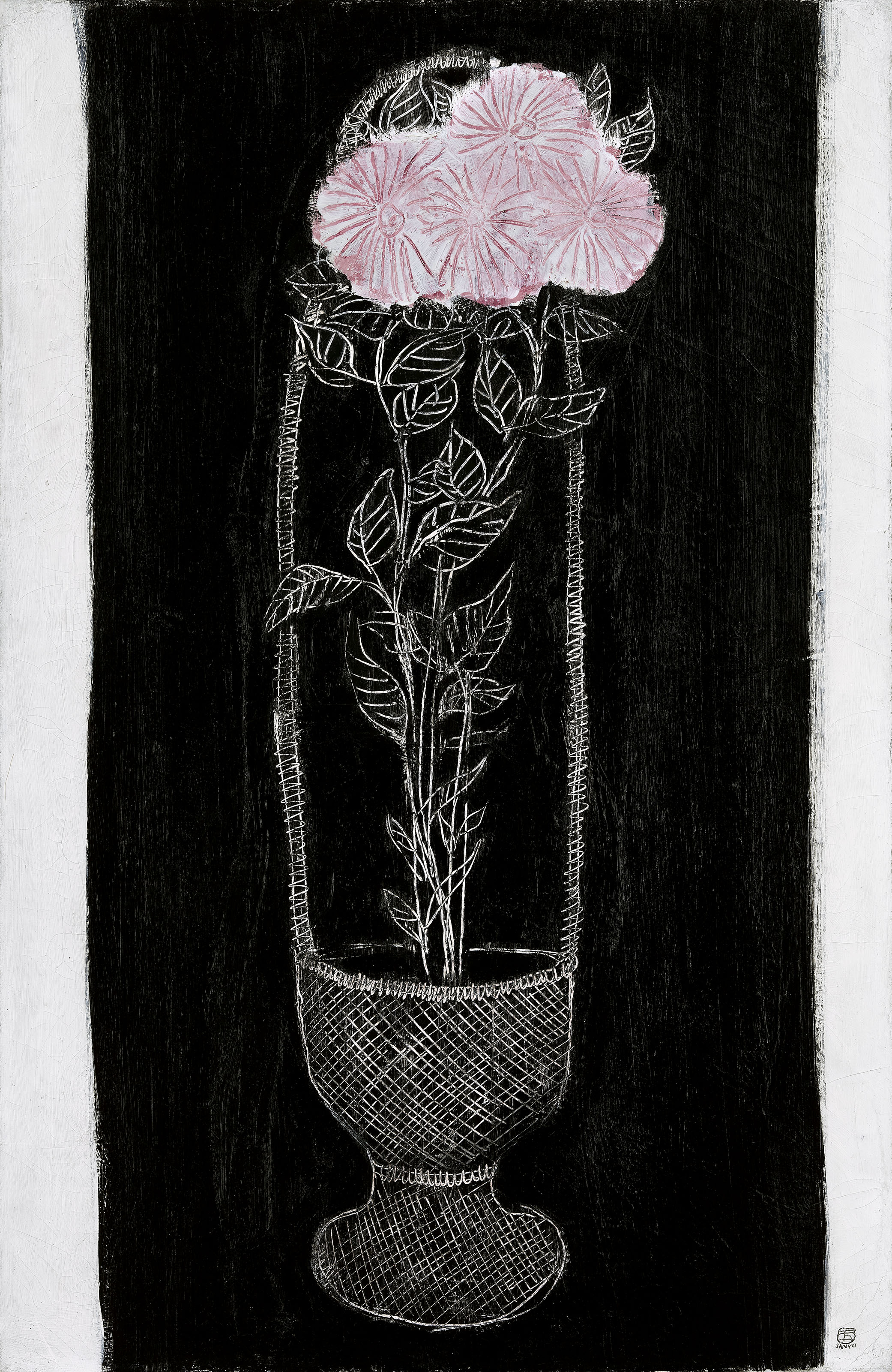 The most expensive sale in this auction is Pink Chrysanthemum In Basket of San Yu. Potted flowers are one of the most classic themes of his practice. This work was created in 1931, with black, white, gray, and pink as the main colors. The exquisite floral subject and the freehand lines of unique style have left with deep impression.
