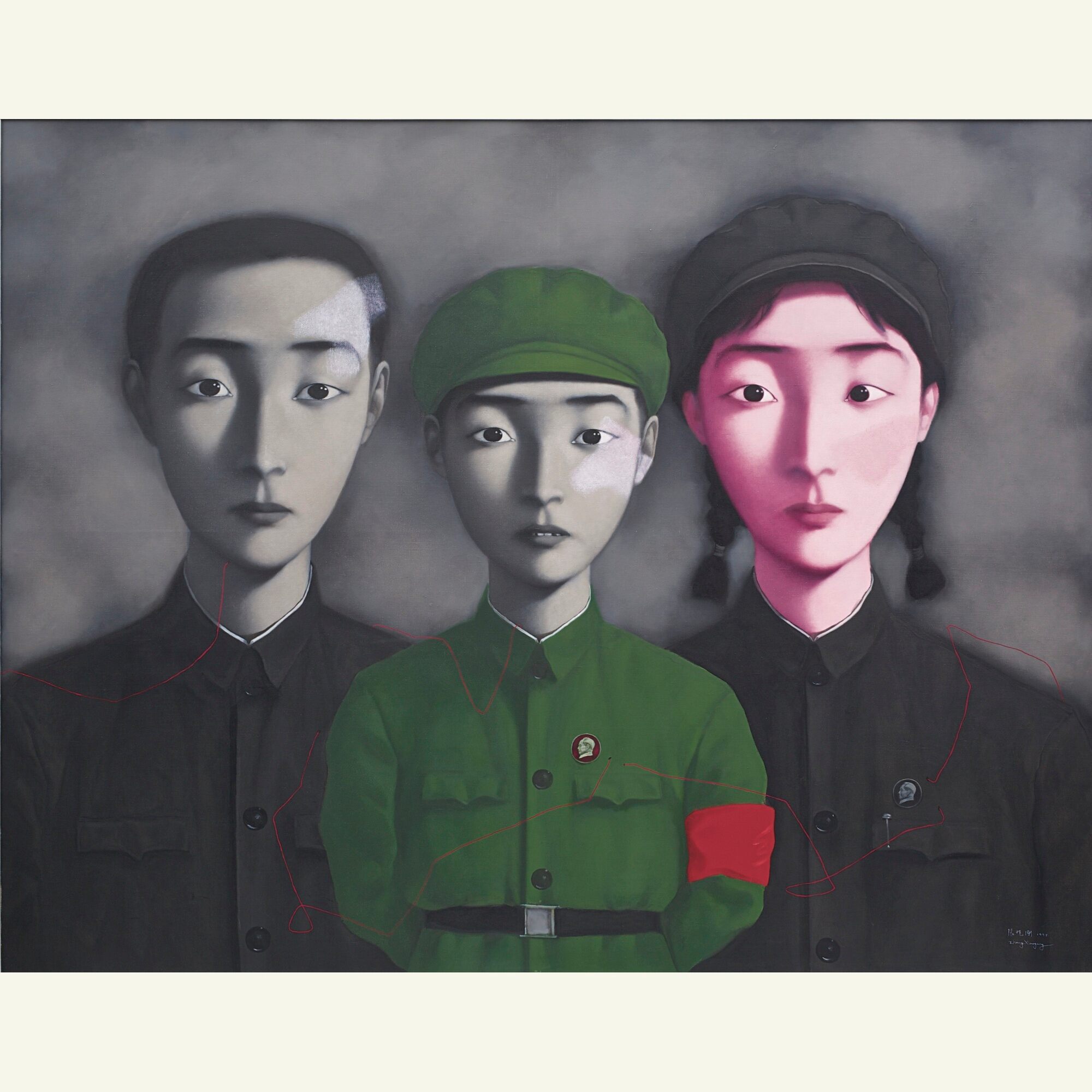 Zhang Xiaogang's Bloodline-big Family No. 2 was estimated at HKD $38 to 48 million. Starting from HKD $30 million, the auction entered fierce bidding. After more than 30 bids, it was hammering at HKD $83 million with a commission fee of HKD $98.03 million. The No. 8074 collector received lot and applause on site. This work also broke the artist's personal record, the HKD $94.2 million priced Bloodline-big Family No. 3 in 2014.