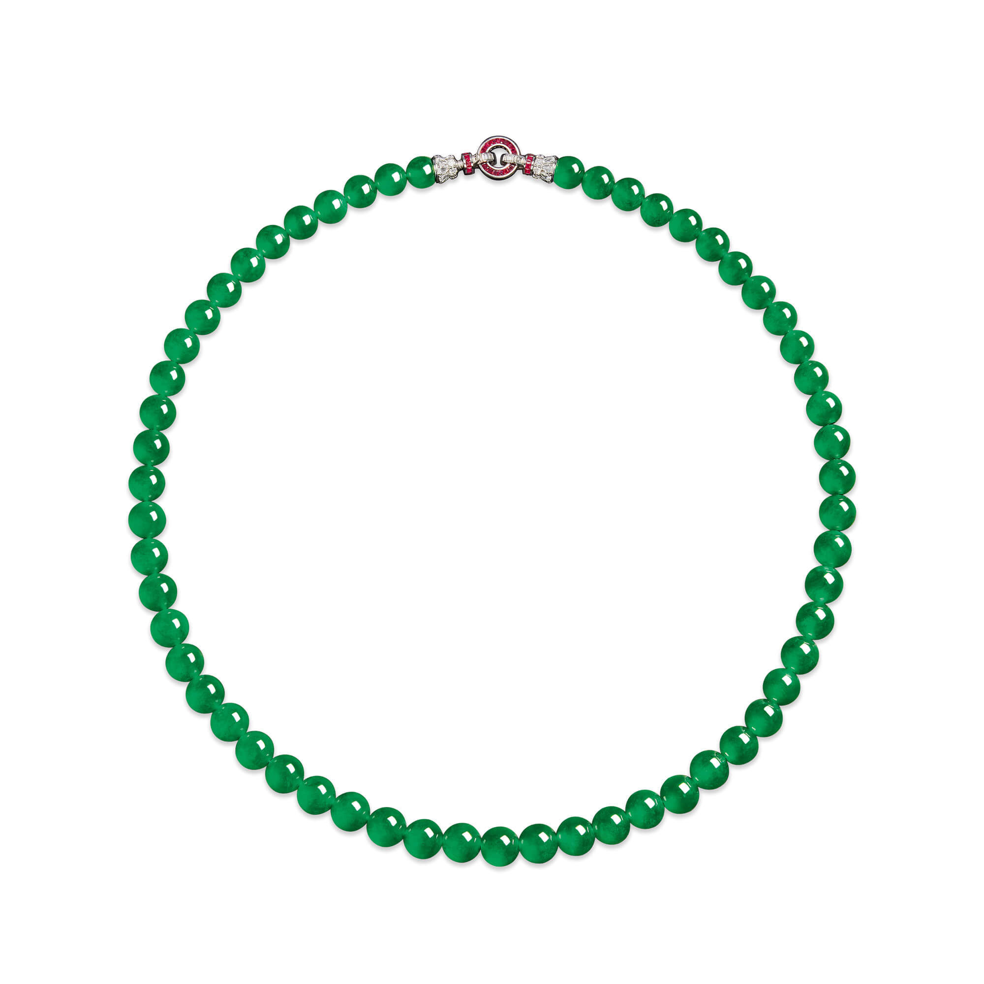 珠寶鐘錶尚品板塊三大專場總成交額1.56億元,4件拍品超千萬元成交。 珍罕的57顆天然滿綠翡翠珠配紅寶石及鑽石項鍊以2300萬元領銜本板塊。 5.01克拉緬甸抹谷“鴿血紅”紅寶石及5.01克拉D色內部無瑕鑽石配鑽石戒指以1725萬元成交,天然滿綠翡翠“福瓜”配鑽石吊墜以1322.5萬元成交,分列二、三位。