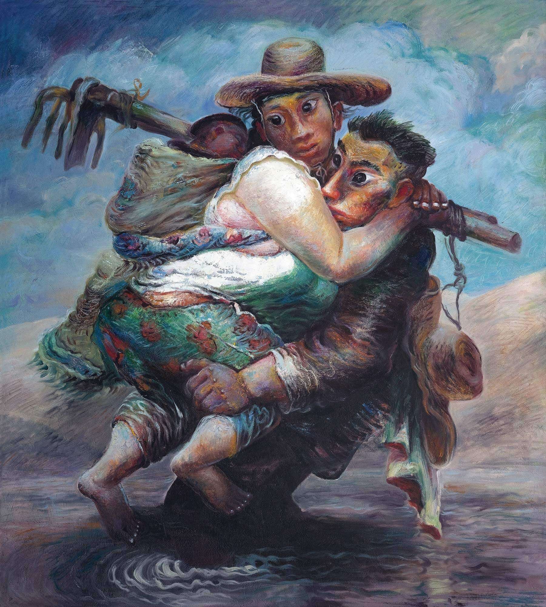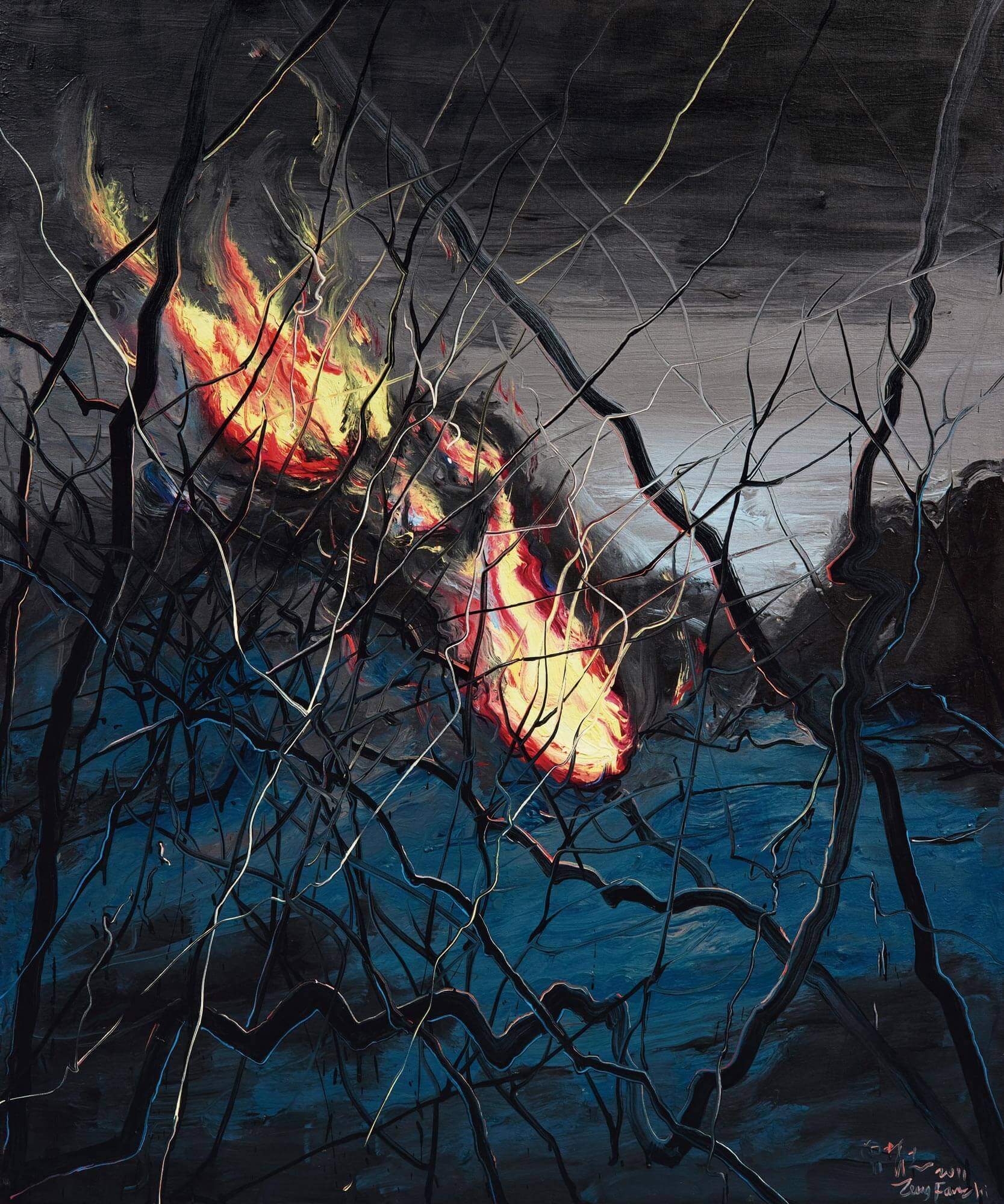 “現當代藝術夜場”由尚揚《當年長工》領銜,該作品以920萬元成交。曾梵志的《火》是本場另外一件頗受關注的作品,以437萬元成交。本場另外一件曾梵志更早期的作品:創作於2004年的《無題-紅色肖像》以287.5萬元成交。此外,羅中立90年代創作的“鄉土藝術”作品《鄉情系列-過河》以391萬元成交。