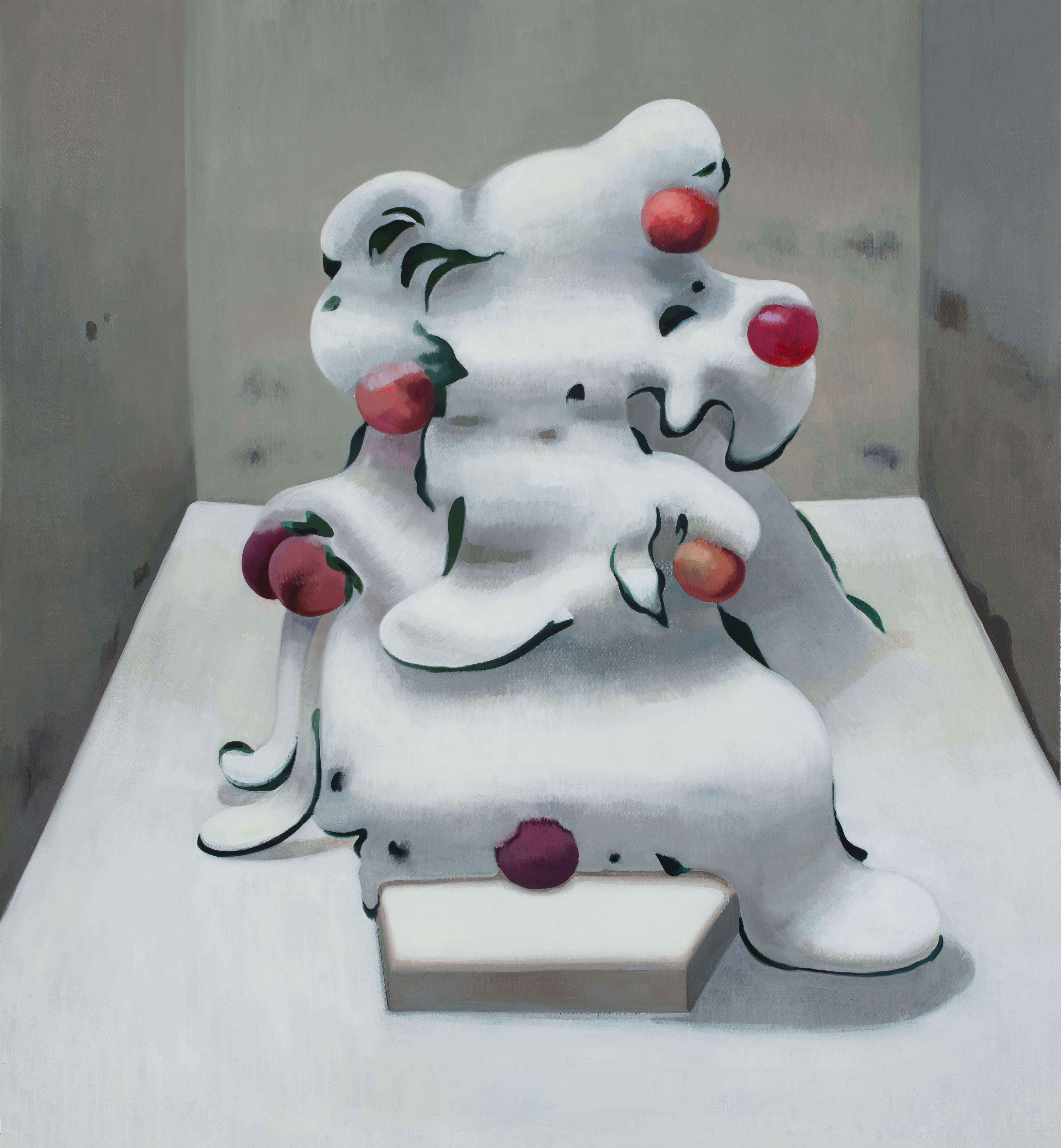 Through a seamless exploration of the painting's inherent logic, Wenqin infuses the snow-covered fruit trees with surreal meaning, accentuating the enigmatic nature of the scene. The snow itself becomes a subtle yet powerful indicator of the supporting fruit trees' internal structure, as it wraps around them and gradually assimilates them into its own form. He intriguingly refers to these transformed trees as "Snow Monsters." Starting from a foundation of mimicry, the snow in Wenqin's works takes on the appearance of a descending layer of skin, engulfing a part of the world into the captivating realm of the "Snow Monster." Within this transformation lies an array of subtle details, each serving as narrative enigmas with complex emotional properties.