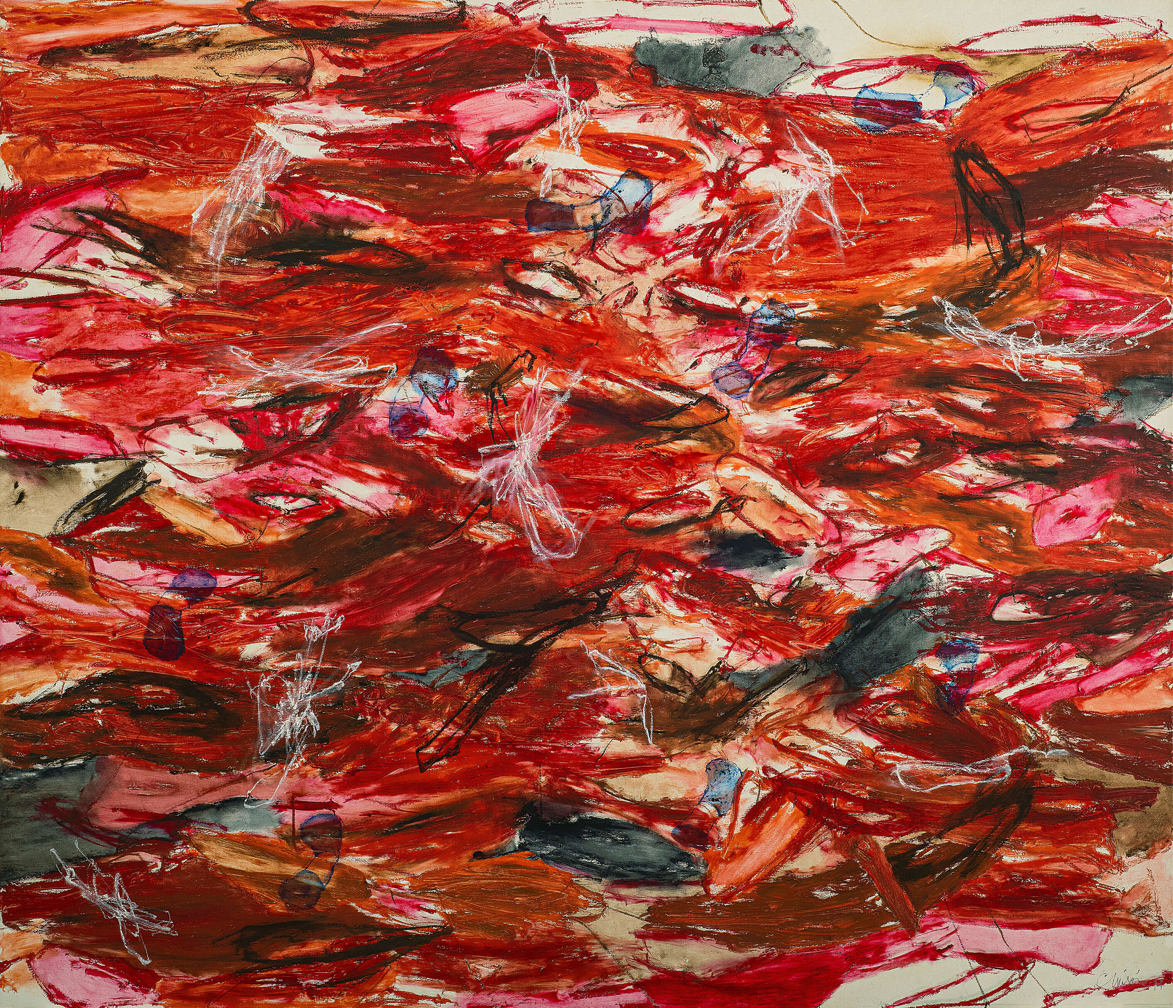Zhang Enli uses expressionism as a basis to reconstruct the figures through winding and flexible lines.: There are both free-flowing outlines to highlight the tension of the body and delicate rubbing to create the skin texture. This combination of hardness and softness not only gives the picture a surging rhythm of life, but also pushes the characters from the flat space to the viewer's field of vision, forming a very aggressive visual experience.